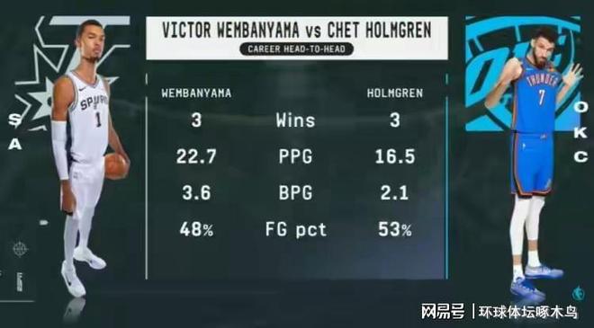 请点击本文右上角关注按钮,感谢您的支持。 12月26日,NBA常规赛将恢复。尽管圣诞节比赛的紧张气氛依然存在,俄克拉荷马城雷霆队将坐镇主场迎战圣安东尼奥马刺队的挑战。这将是双方本赛季常规赛的第三次交锋,也将是继前两次对决之后,又一次像火星落地一样的碰撞。对于两支年轻球队来说,这场比赛不仅仅是常规赛积分的争夺,而是新一代内线统治力的直接对话。本场对决最大的亮点无疑是两位青年才俊Victor Vunbanyama和Chet Holmgren。作为联盟近年来最受关注的两位独角兽内线,毫不夸张地说他们的竞争是“下一代内线之战”。两人的体型和技能相似双方都有能力改变本赛季比赛的防守方向,所以每次见面都充满了话题。回顾两人职业生涯至今的出场记录,可以说是旗鼓相当,密不可分。据统计,文班亚马和霍姆格伦在此前的职业生涯中总共交手过6次。双方各胜3场,战绩完美打平。如此势均力敌的交锋记录,给即将到来的第三战增添了更多的刺激性和不确定性。过去的记录表明,当两名伟大球员同时在场时,两支球队之间并没有明显的区别。结果往往取决于现场表现和角色支持。从个人数据水平来看,文班亚玛在过去的直接对话中似乎具有一定的统治力。在这6场比赛中,文班亚马场均得到22.7分,展现出了他作为球队核心得分手的潜力。更可怕的是他对我的遏制在防守端,场均盖帽3.6次,这似乎形成了一个禁飞区。此外,他的投篮命中率保持在53%,表现出了非常高的进攻效率。这样的攻防表现,才是马刺对阵雷霆最锋利的矛和最强盾的原因。反观霍姆格伦,尽管得分数据略显逊色,但他却是雷霆队不可或缺的枢纽。在此前对阵本亚马的比赛中,他场均得到16.5分,投篮命中率为48%。防守端,霍姆格伦也拥有出色的护框能力,场均贡献2.1次盖帽。他的存在为雷霆队的外线防守提供了坚实的支撑。同时,他的空间拓展和策应作用也是雷霆战术体系的重要组成部分。第三场比赛,两队都全力以赴。凭借主场优势,雷霆队当然希望利用主场气氛占据上风对阵年轻对手,从而在整体交锋战绩上取得领先。马刺队将渴望依靠本亚马在内线的统治力来打破目前的力量平衡,赢得这场关键之战。如果霍姆格伦能够率领雷霆队守住主场,或者文班亚马在阶段性的数据和对位上继续压制对手,那么一切悬念都将在12月26日的比赛中揭晓,这将是一场未来巨星之间的精彩较量。